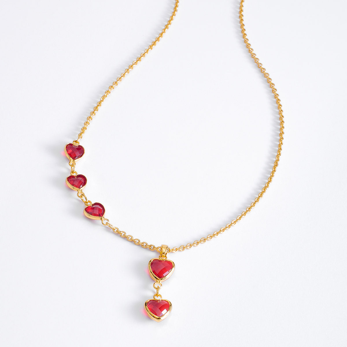 Collar 4 baños de Oro 18K y piedras de cristal en tono rojo